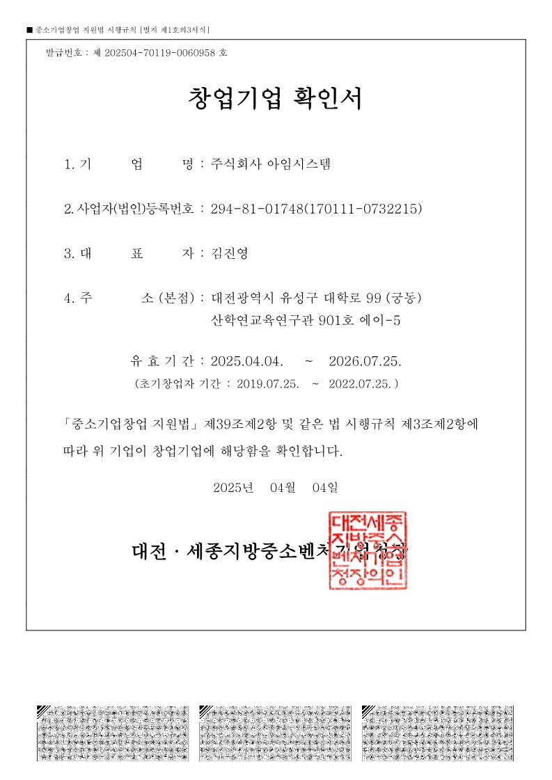 Certificate of Venture Business Verification