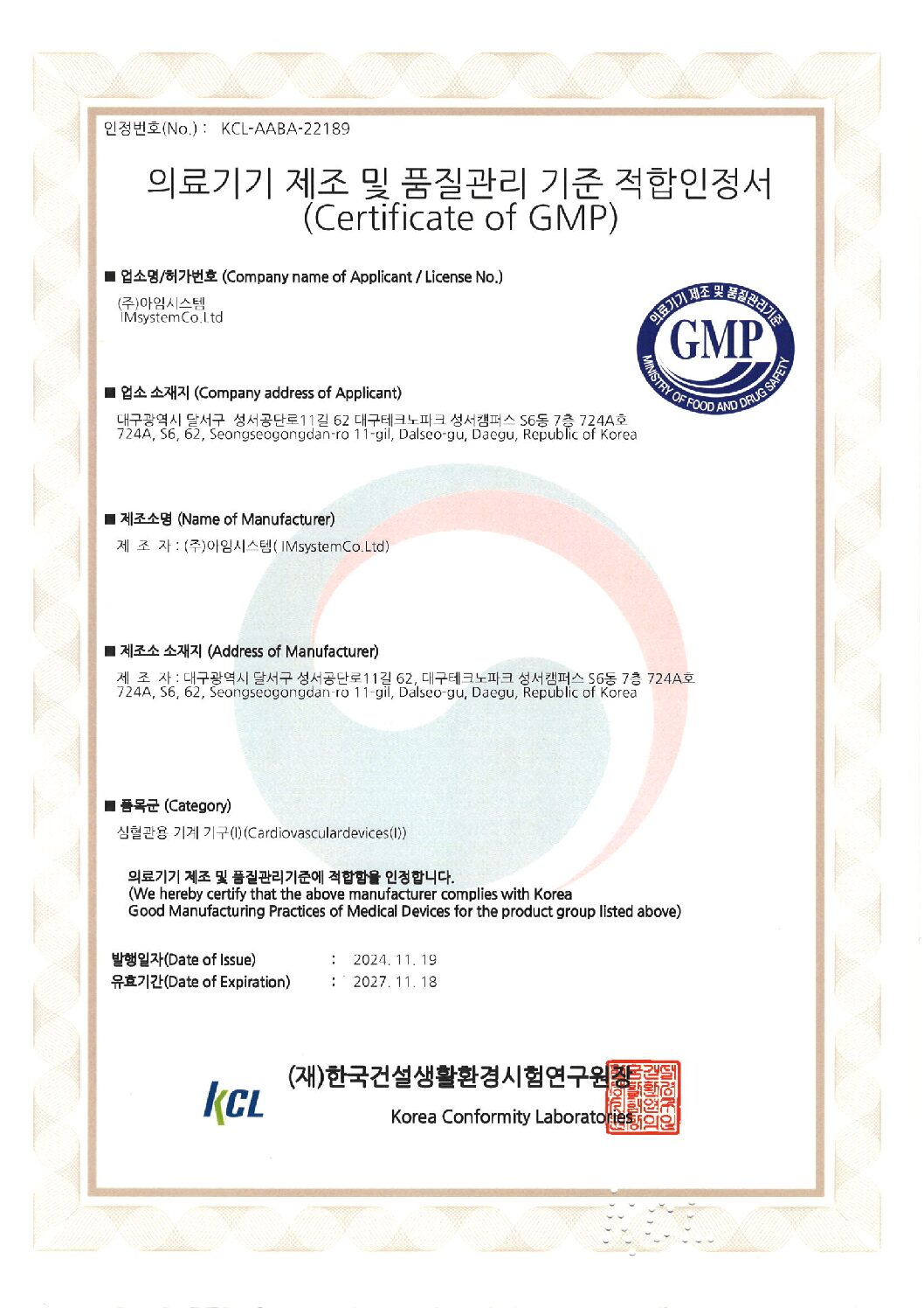 Certificate of GMP